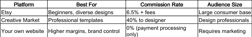 Platform choice matters significantly for template sales: